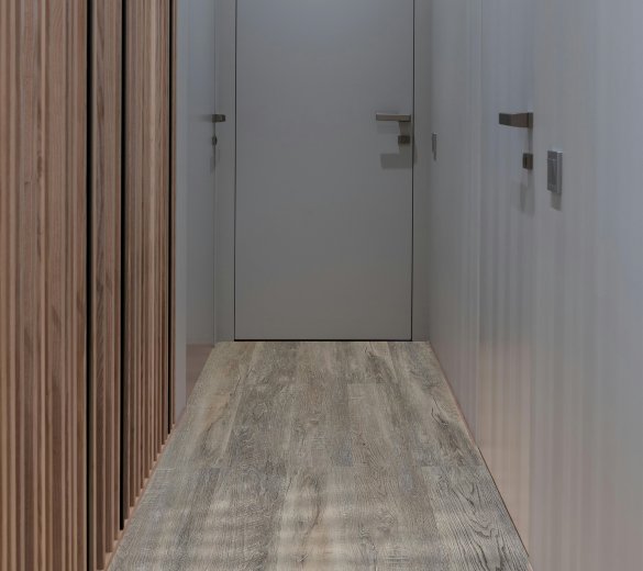 Dzięki technologii Embossed in Register (EIR) powierzchnia paneli odwzorowuje rysunek słojów z zachowaniem ich głębi i struktury. Efekt? Podłoga wygląda jak prawdziwe drewno – i tak też się ją odbiera w dotyku. To idealne rozwiązanie dla tych, którzy cenią wizualne walory drewnianych podłóg, ale potrzebują trwałości i odporności typowej dla nowoczesnych materiałów LVT.