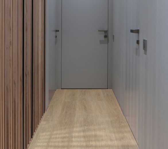 MODULARI EIR to klejone panele winylowe (dryback), które wnoszą do wnętrz przyjemne, naturalne ciepło dębu. Inspirowany naturą drewna doskonale współgra zarówno z jasnymi, jak i ciemniejszymi elementami wyposażenia, tworząc przestrzeń pełną harmonii i ponadczasowej elegancji.