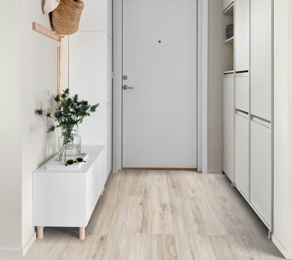 MODULARI LVT to klejone panele winylowe (dryback), które wnoszą do wnętrz przyjemne, naturalne ciepło dębu. Inspirowany naturą drewna doskonale współgra zarówno z jasnymi, jak i ciemniejszymi elementami wyposażenia, tworząc przestrzeń pełną harmonii i ponadczasowej elegancji.