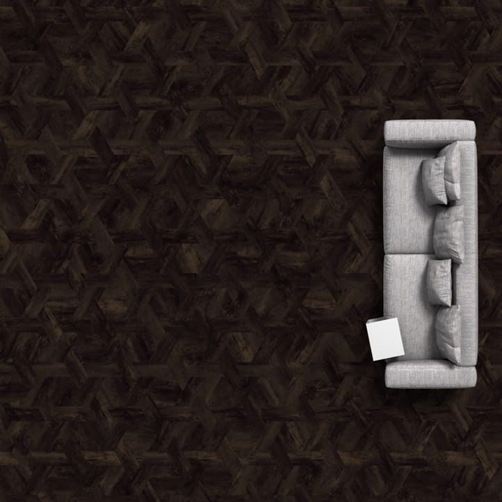 Centralny hexagon otoczony przeplatanymi równoległobokami. Struktura składa się z dwóch kształtów, które pasują, jakby były dla siebie stworzone. Działają razem, tak jak podłoga powinna współpracować z twoim wnętrzem, tworząc urzekający wzór. Wyrafinowany, ale pełen charakteru.